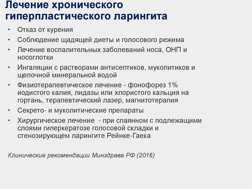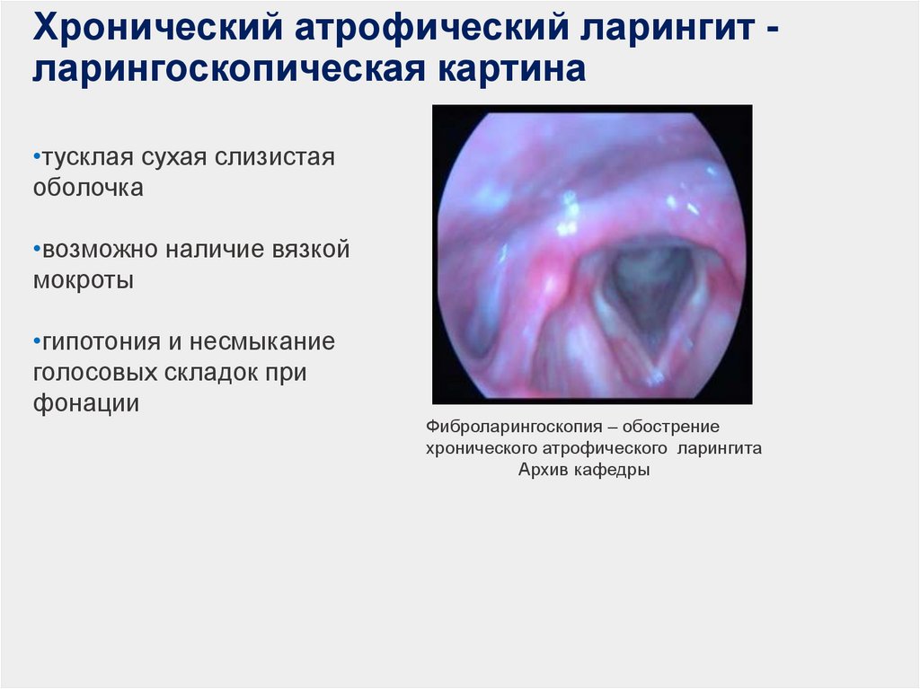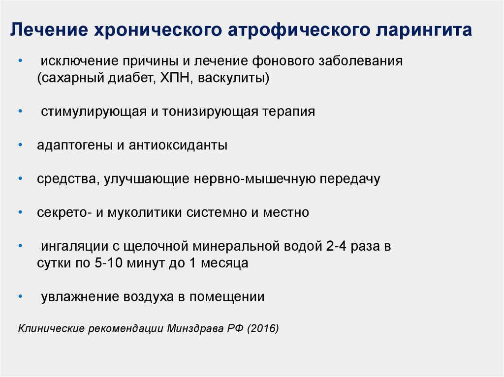 Лечение хронического атрофического ларингитаисключение причины и лечение фонового заболевания