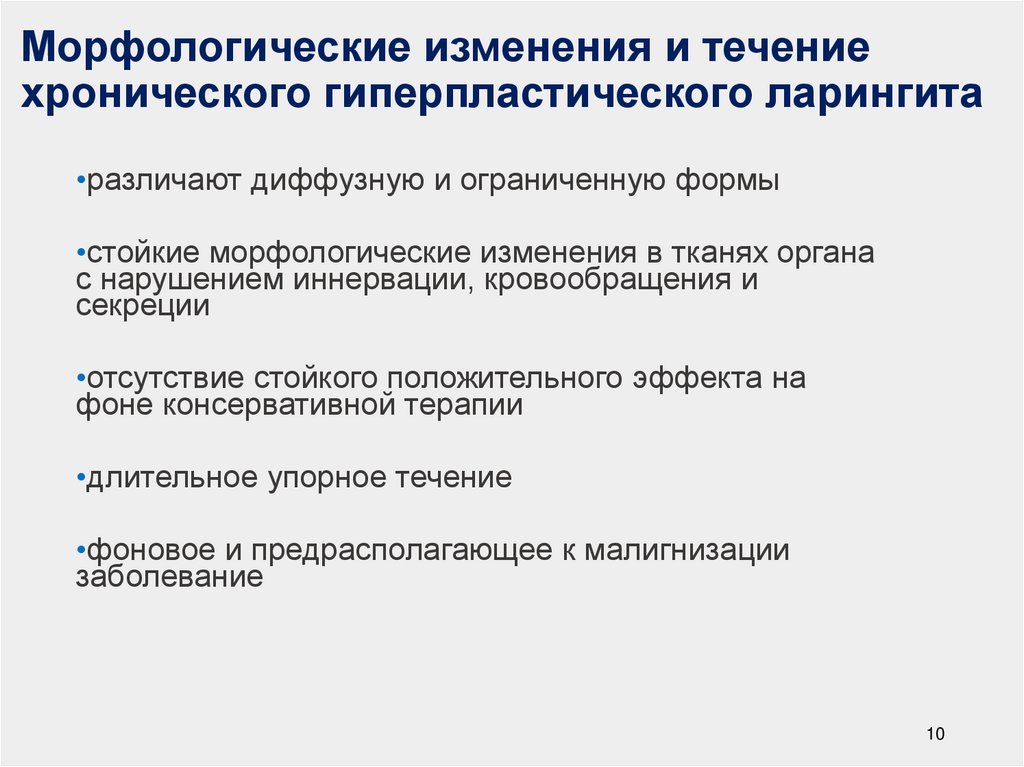 Морфологические изменения и течениехронического гиперпластического ларингита