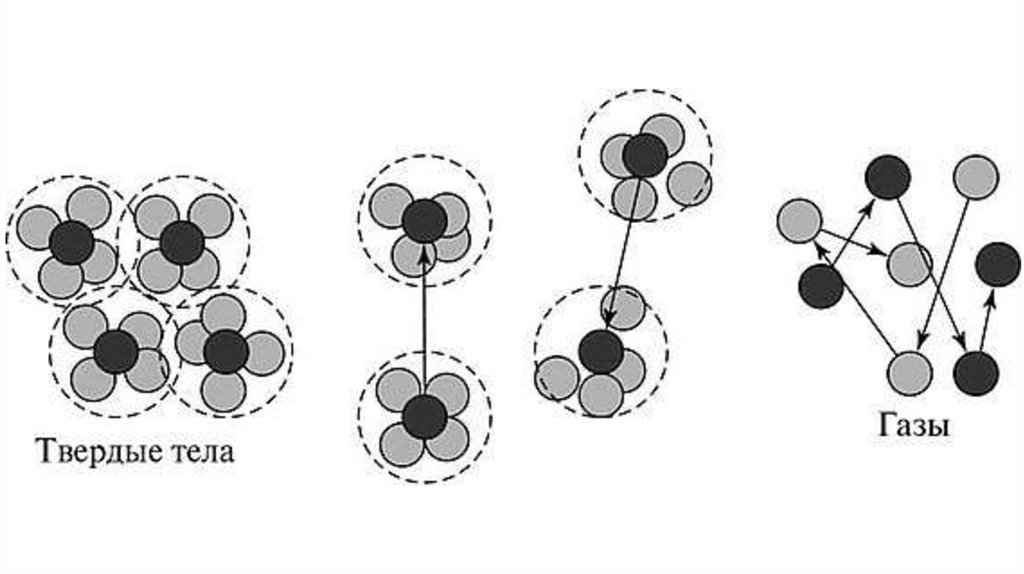 4. Чем отличается движение молекул в газах, жидкостях и твердых