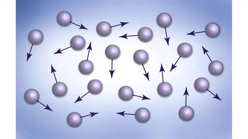 Тепловое движение: молекулы тел постоянно двигаются, и чем вышетемпература, тем быстрее движутся молекулы.