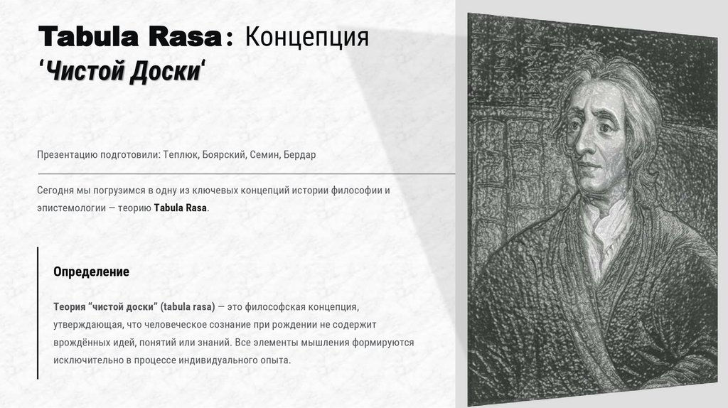 Теория “чистой доски” (tabula rasa) — это философская концепция,