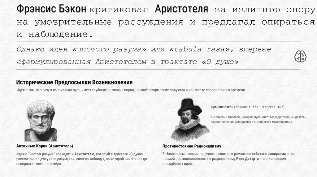 Однако идея «чистого разума» или «tabula rasa», впервые