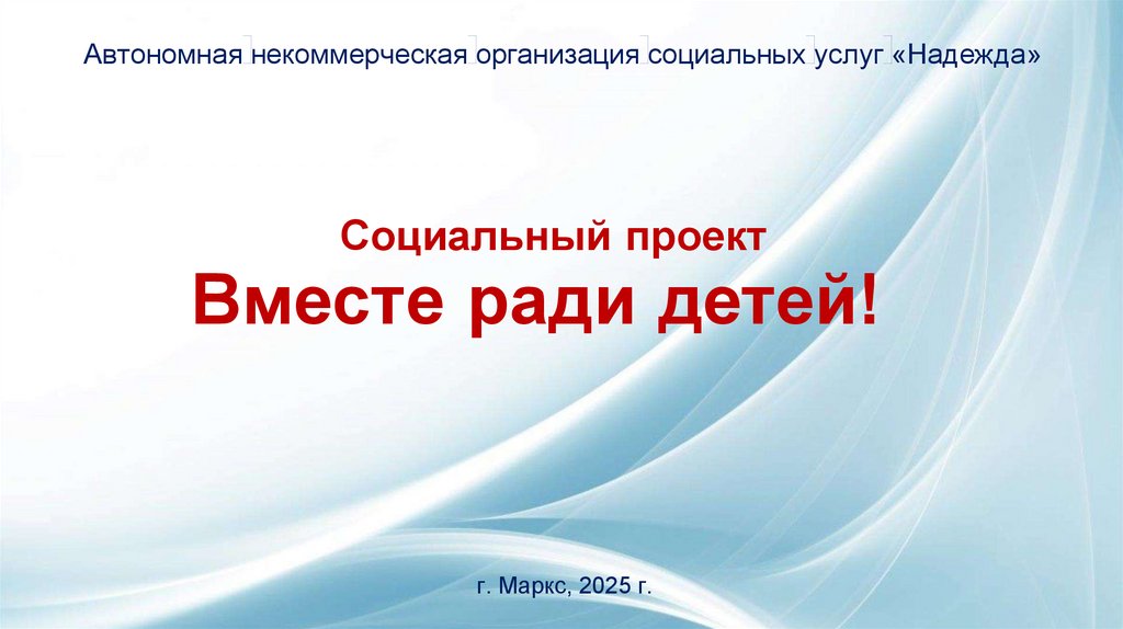 Автономнаяꢀнекоммерческаяꢀорганизацияꢀсоциальныхꢀуслугꢀ«Надежда»Социальный проект