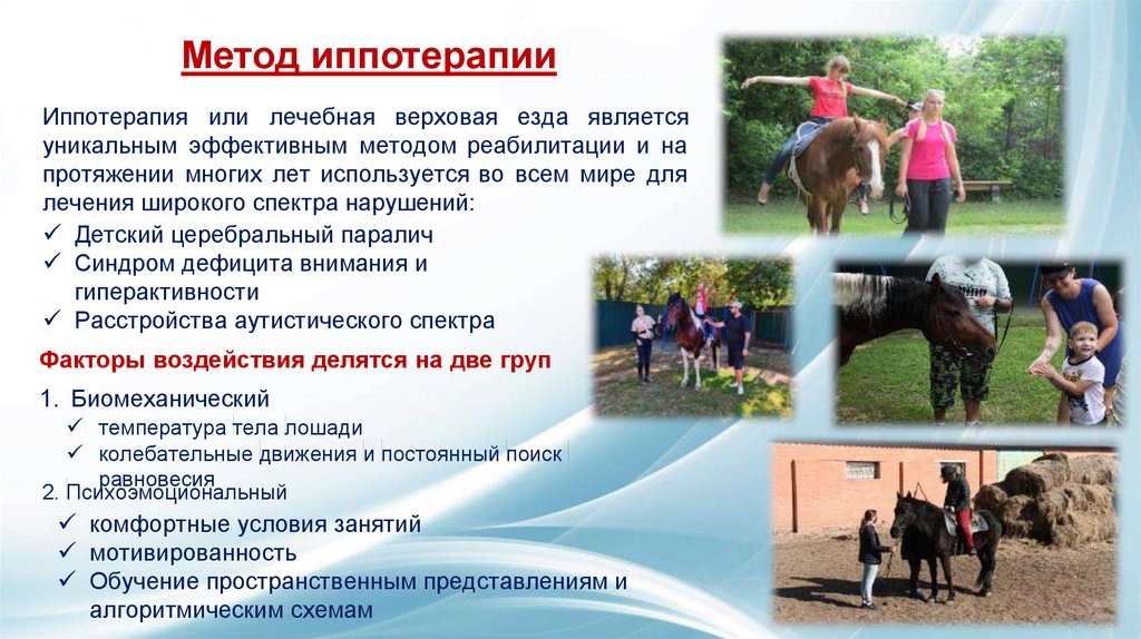 Метод иппотерапииИппотерапияꢀ илиꢀ лечебнаяꢀ верховаяꢀ ездаꢀ являетсяꢀ