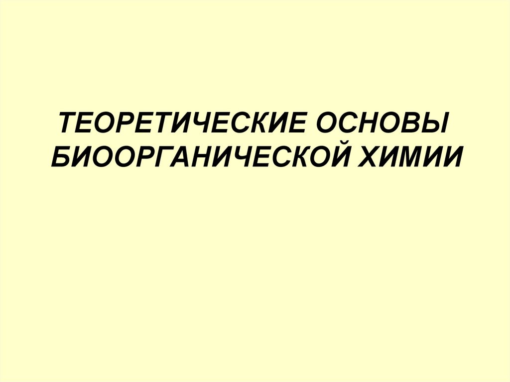 ТЕОРЕТИЧЕСКИЕ ОСНОВЫБИООРГАНИЧЕСКОЙ ХИМИИ