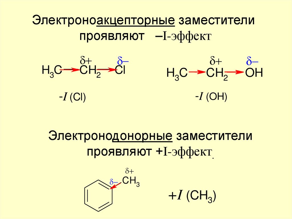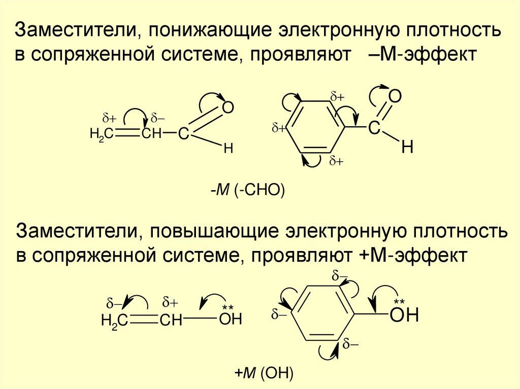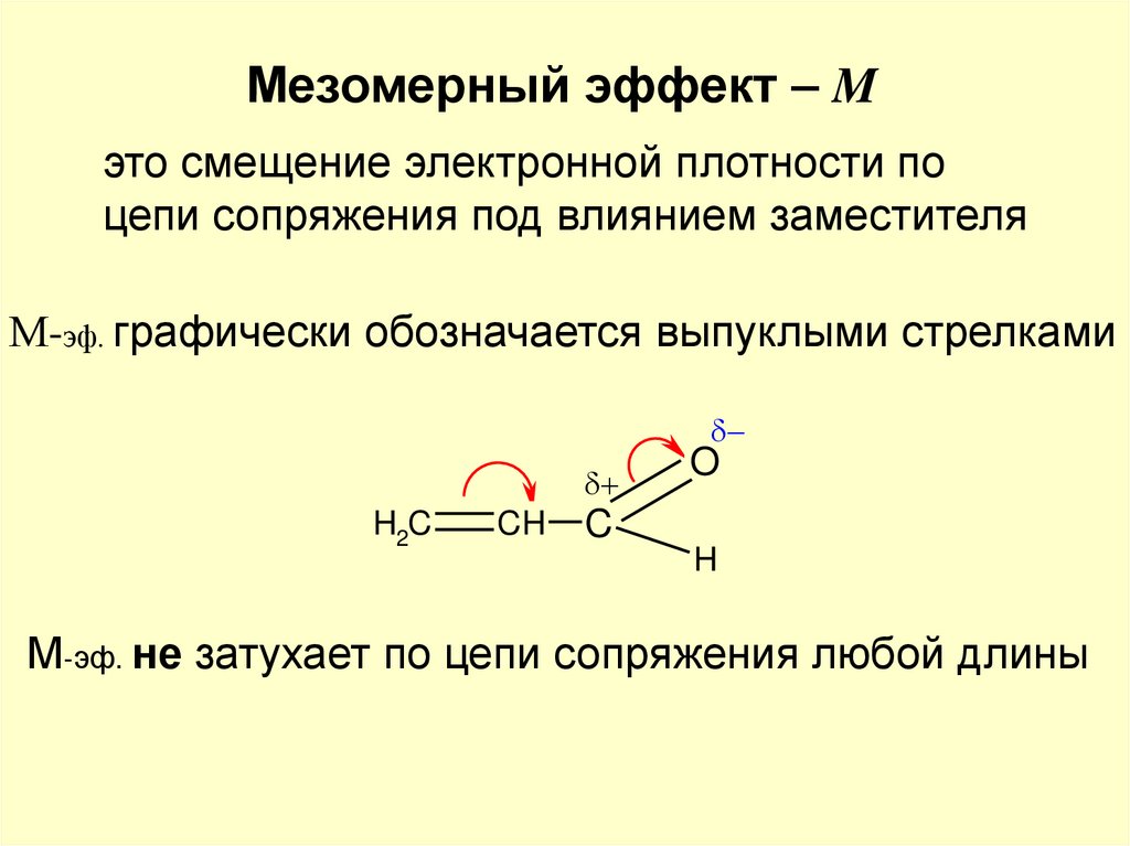 Мезомерный эффект – Mэто смещение электронной плотности по
