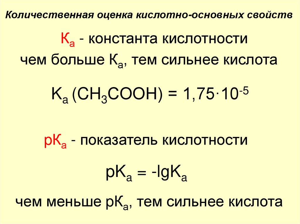 Количественная оценка кислотно-основных свойствКа - константа кислотности