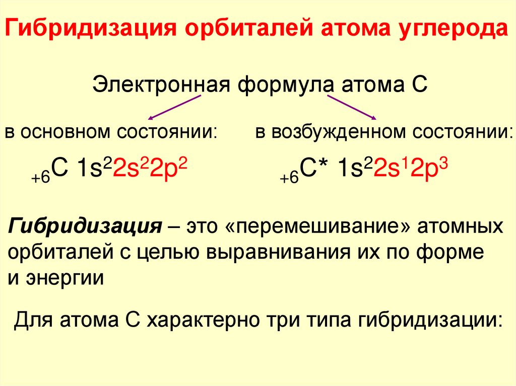 Гибридизация орбиталей атома углеродаЭлектронная формула атома С