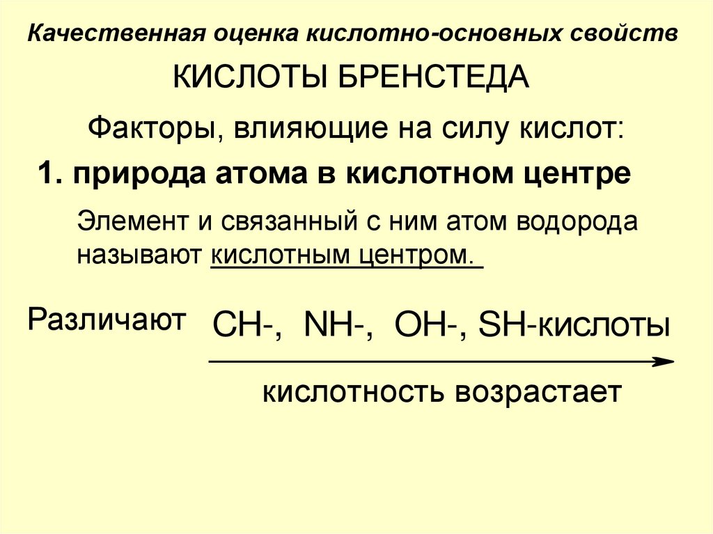 Качественная оценка кислотно-основных свойствКИСЛОТЫ БРЕНСТЕДА