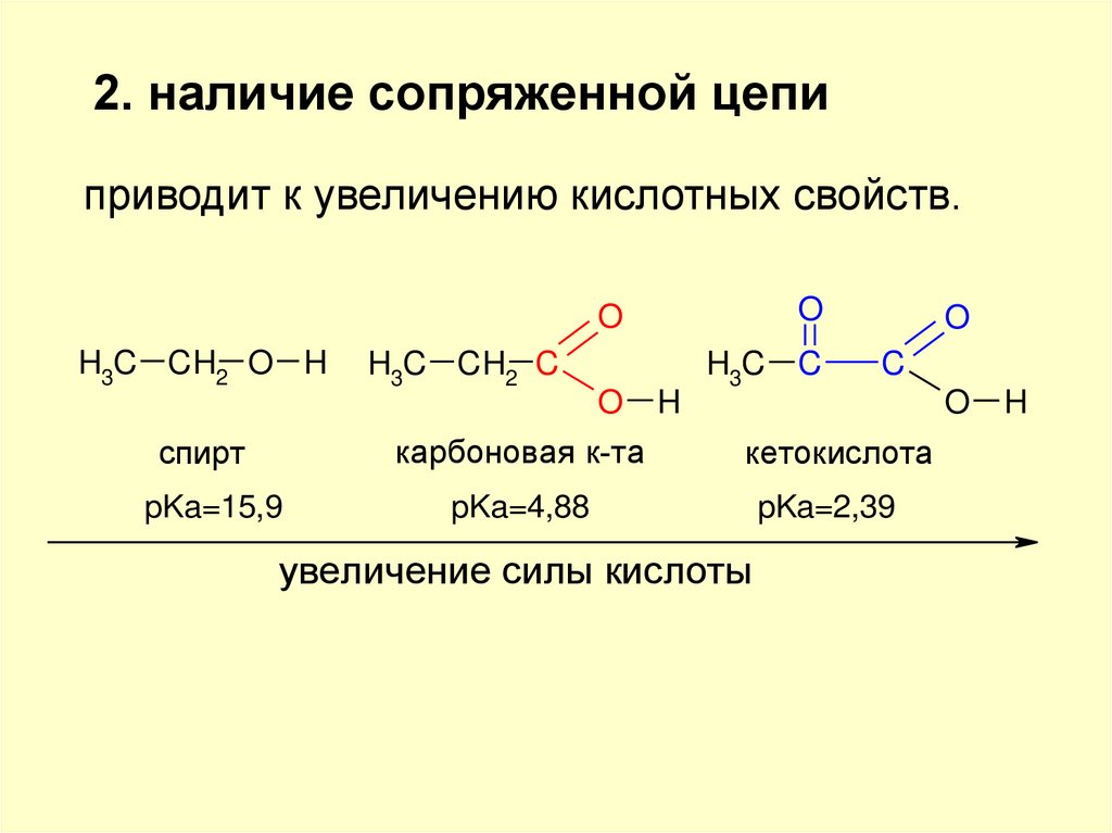 2. наличие сопряженной цепиприводит к увеличению кислотных свойств.