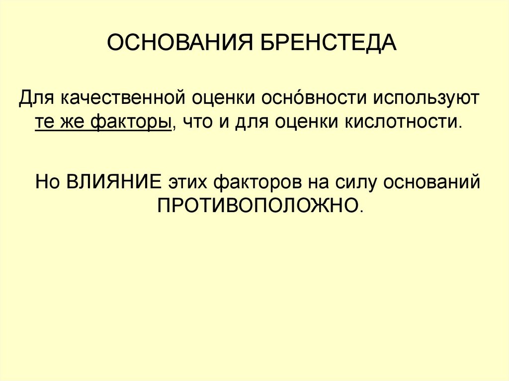 Но ВЛИЯНИЕ этих факторов на силу оснований