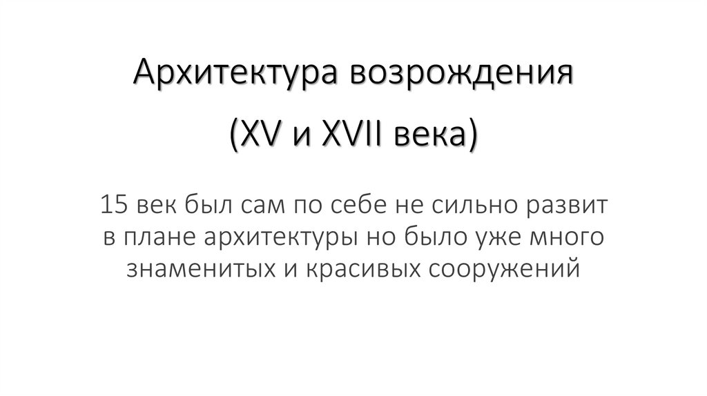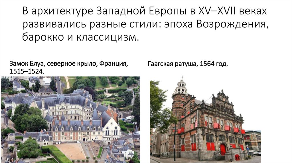 В архитектуре Западной Европы в XV–XVII векахразвивались разные стили: эпоха Возрождения,