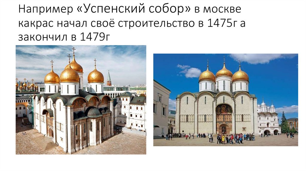 Например «Успенский собор» в москвекакрас начал своё строительство в 1475г а