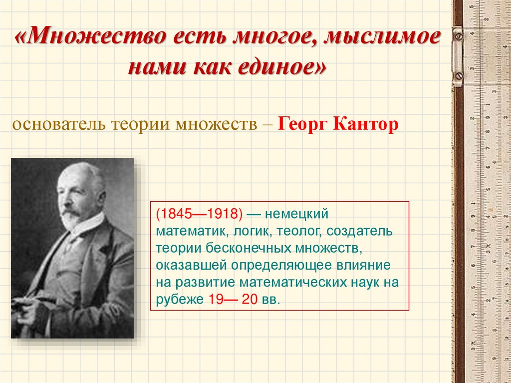 Понятие множества является одним изнаиболее общих и наиболее важных