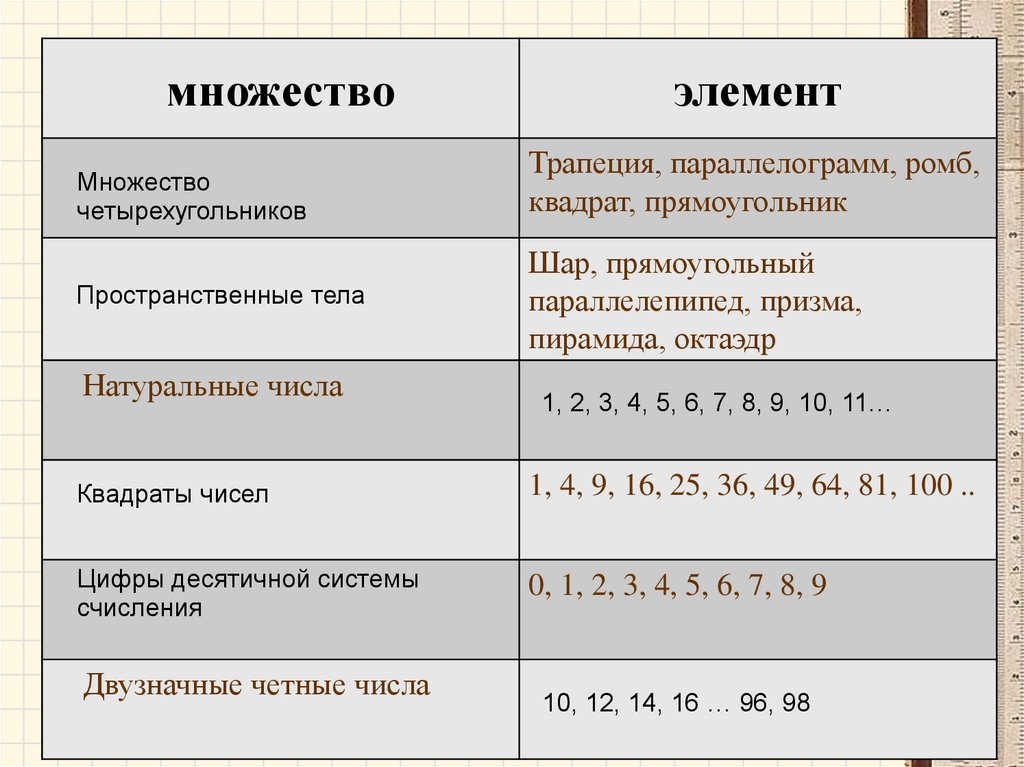 Основное множество: {1, 3, 5, 7, 9} – нечетные цифры