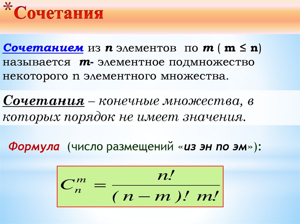 букет порядок неважен это подмножество это сочетание «из пяти по