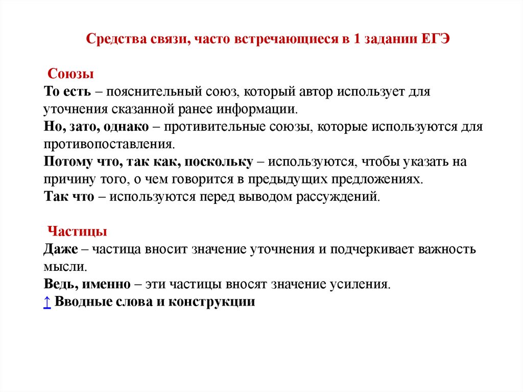 Средства связи, часто встречающиеся в 1 задании ЕГЭСоюзы