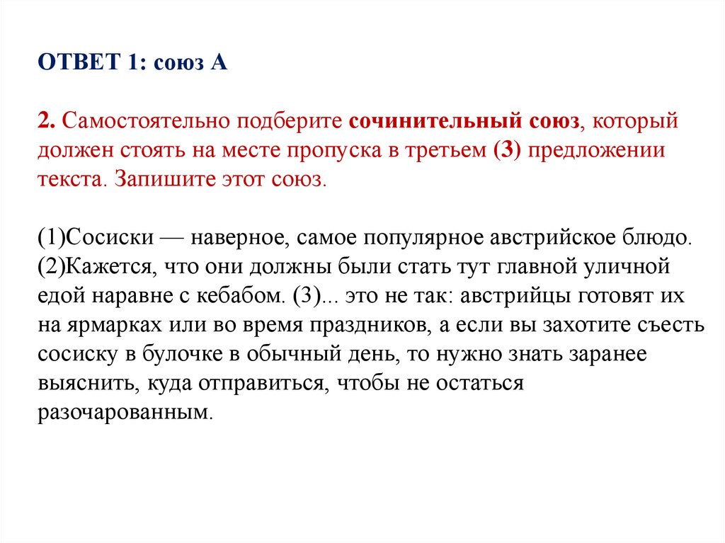ОТВЕТ 1: союз А2. Самостоятельно подберите сочинительный союз, который