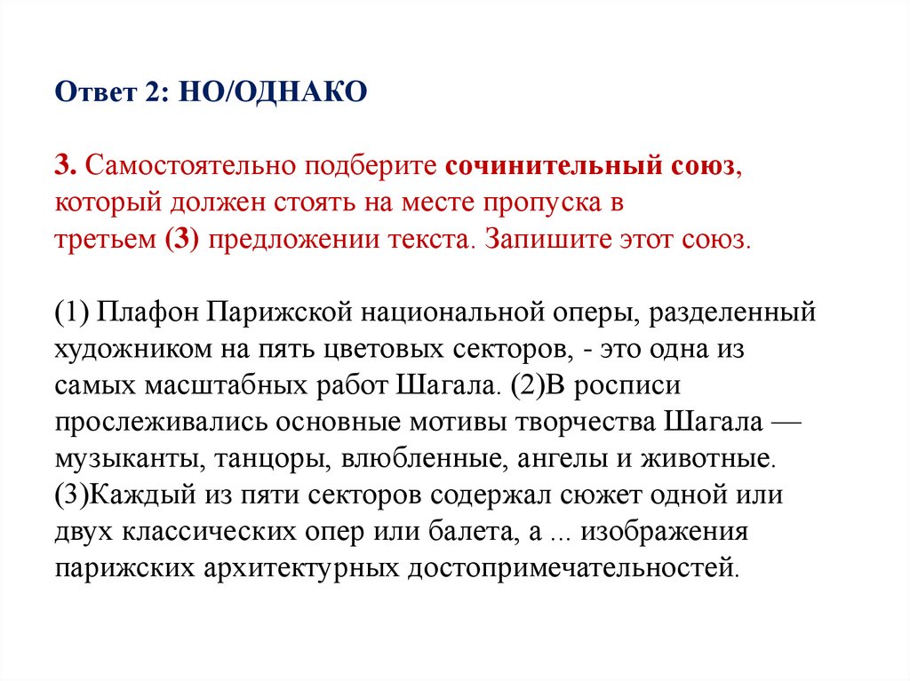 Ответ 2: НО/ОДНАКО3. Самостоятельно подберите сочинительный союз,