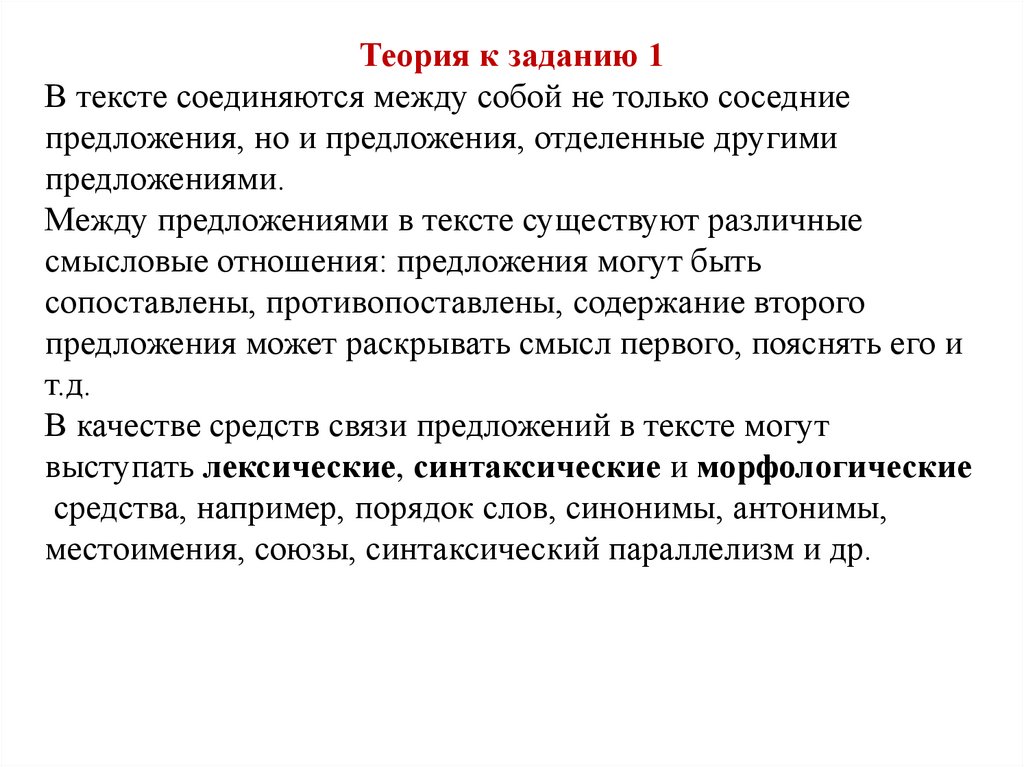 Теория к заданию 1В тексте соединяются между собой не только соседние