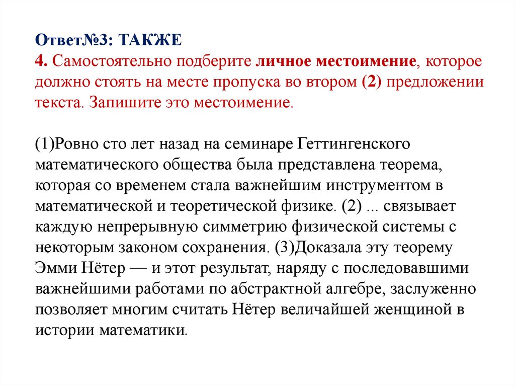 Ответ№3: ТАКЖЕ4. Самостоятельно подберите личное местоимение, которое