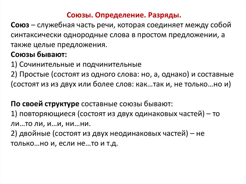 Союзы. Определение. Разряды.Союз – служебная часть речи, которая соединяет между собой