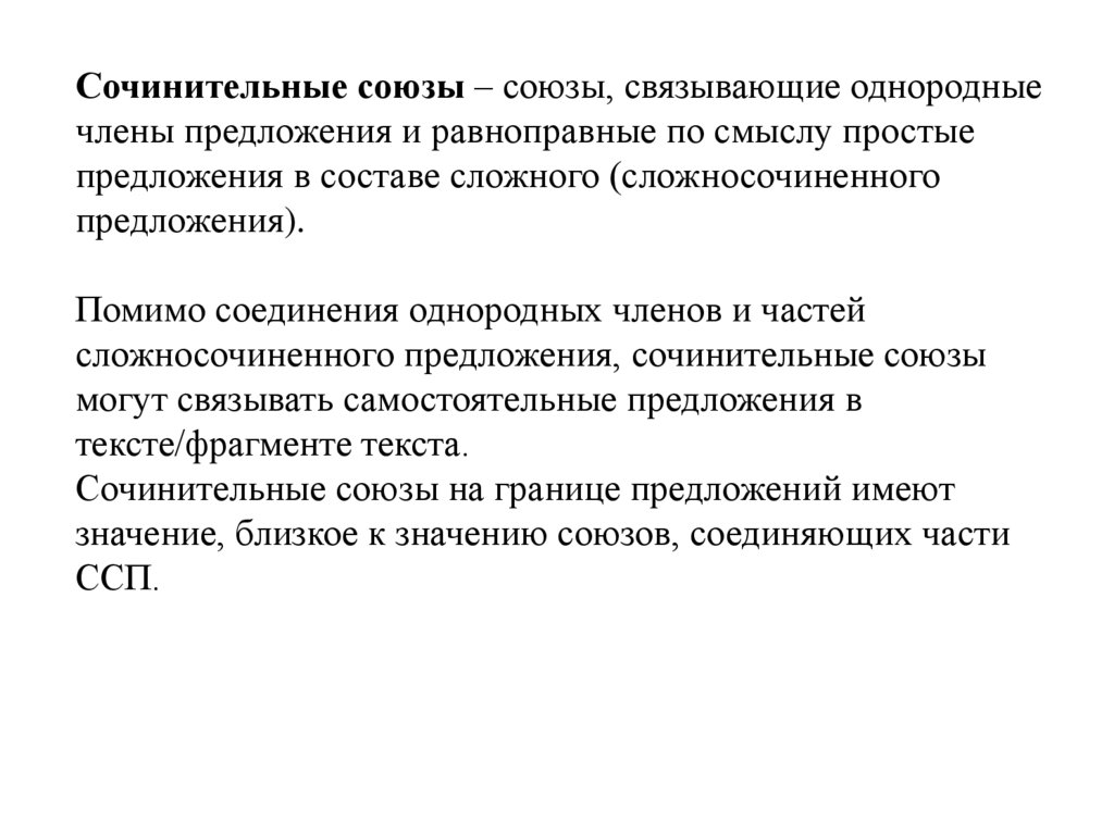 Сочинительные союзы – союзы, связывающие однородныечлены предложения и равноправные по смыслу простые