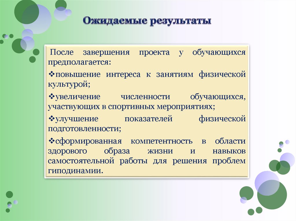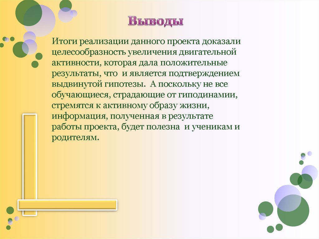 Итоги реализации данного проекта доказалицелесообразность увеличения двигательной