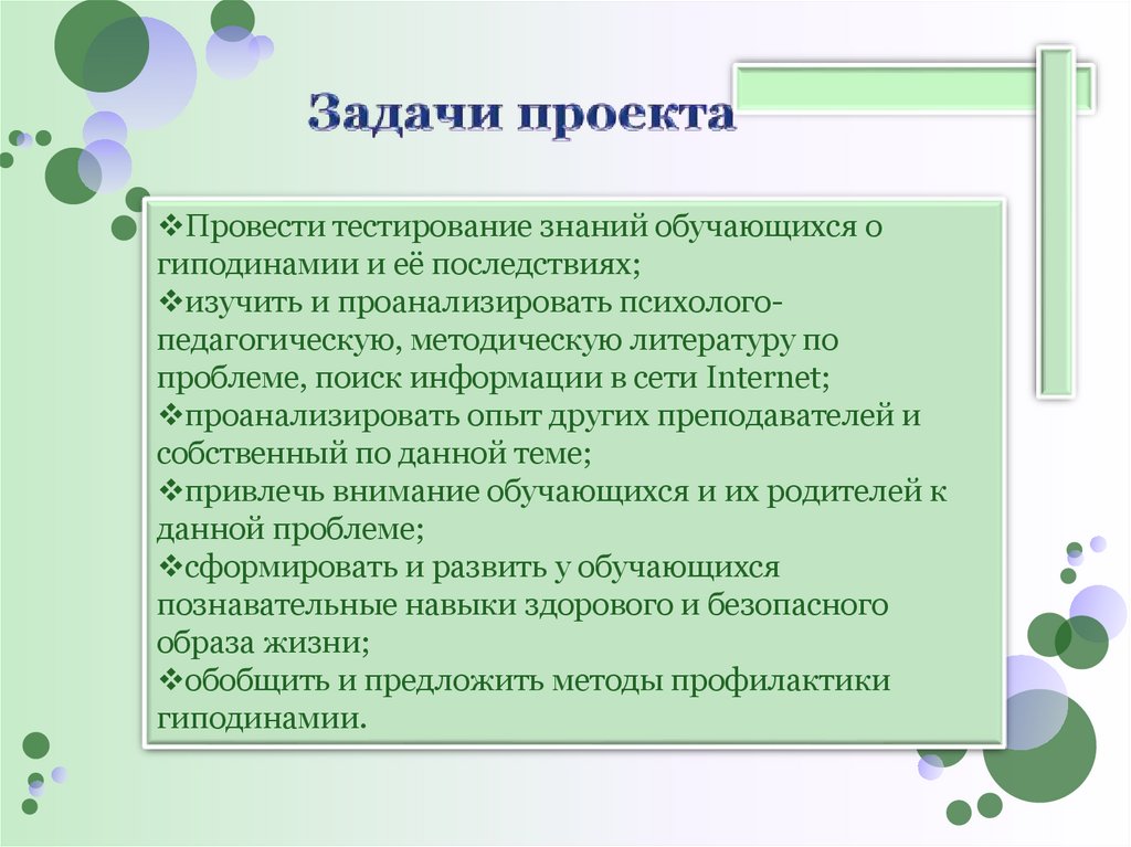 Провести тестирование знаний обучающихся огиподинамии и её последствиях;