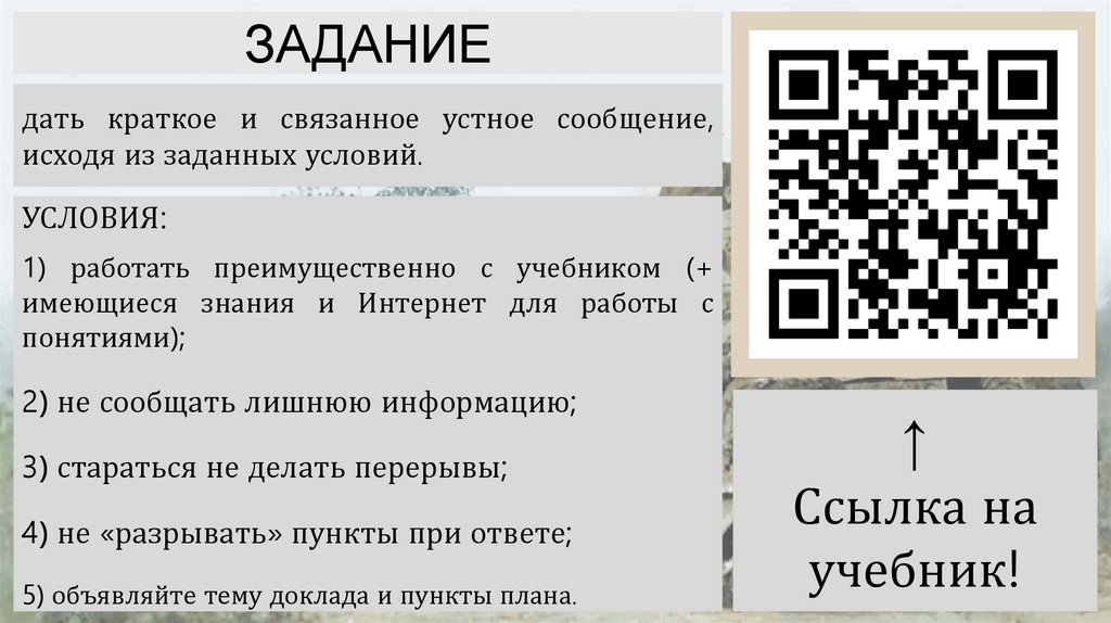 ЗАДАНИЕдать краткое и связанное устное сообщение,