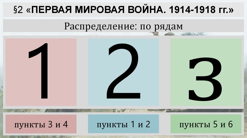 §2 «ПЕРВАЯ МИРОВАЯ ВОЙНА. 1914-1918 гг.»Распределение: по рядам