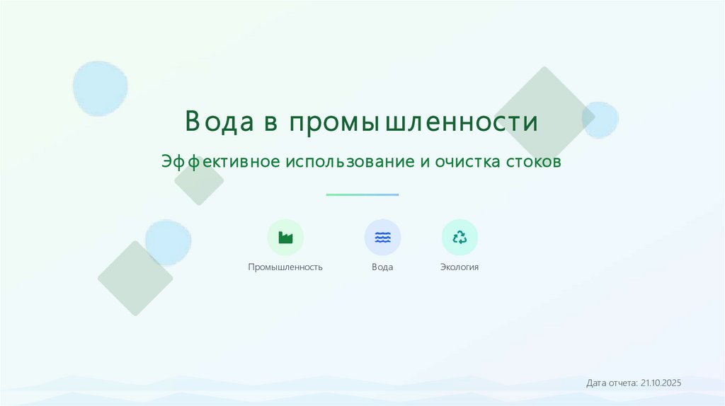 В од а в промы шл еннос т иЭф ф ектив ное испол ь зование и очистка стоков