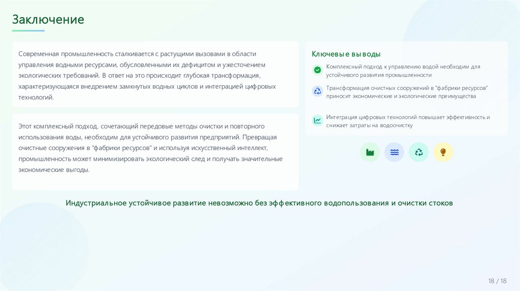 Индус триал ьное устойчивое развитие невозможно без эф ф ективного водопол ь зования и очистки стоков