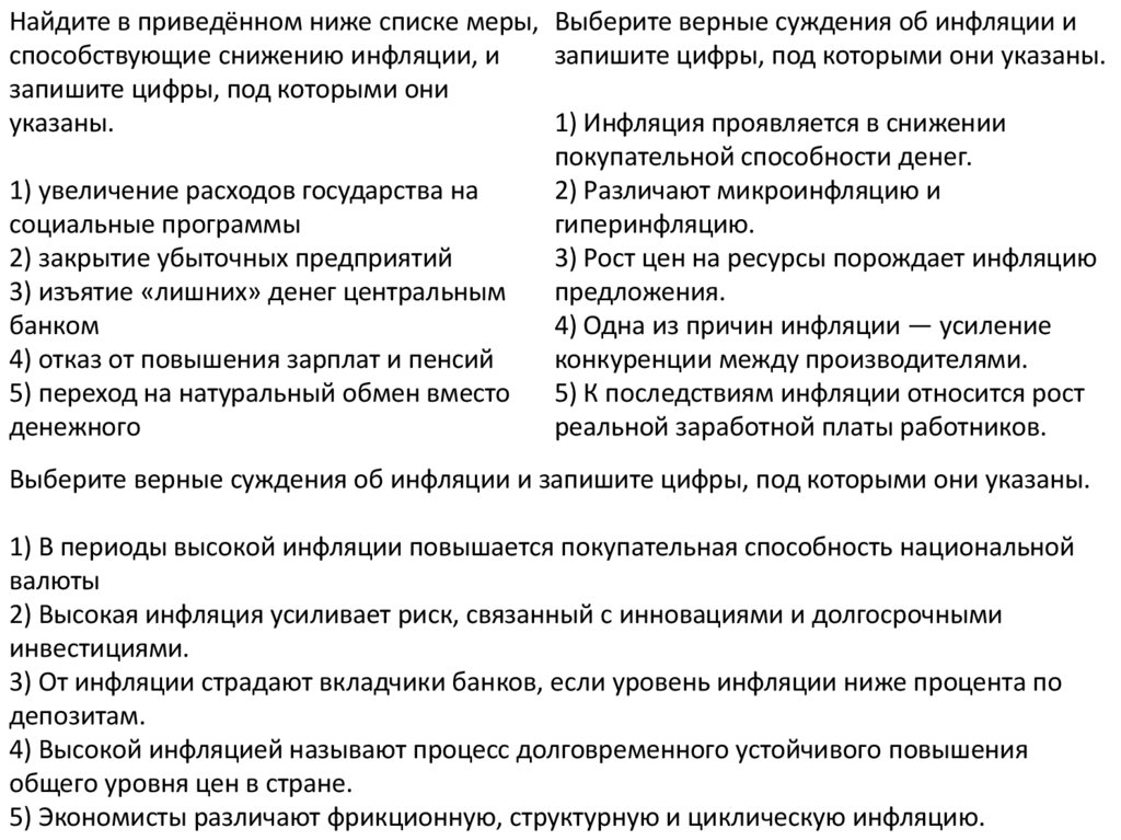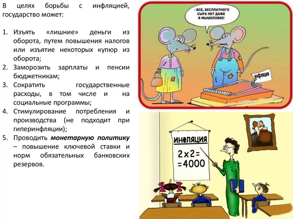 борьбы с инфляцией. Каждый пример должен быть сформулирован развёрнуто.