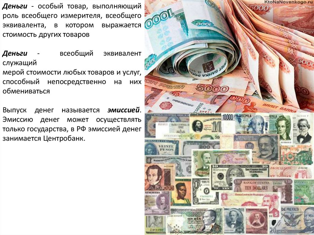 Деньги - особый товар, выполняющийроль всеобщего измерителя, всеобщего