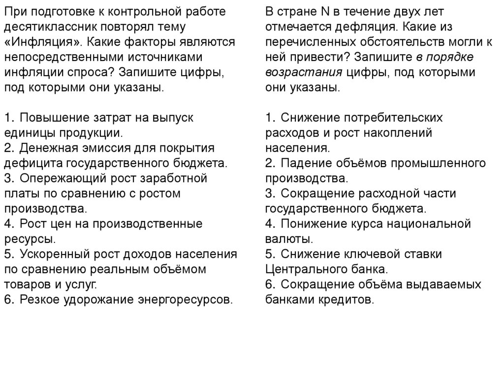 — укажите не менее трёх основных признаков понятия «инфляция»;