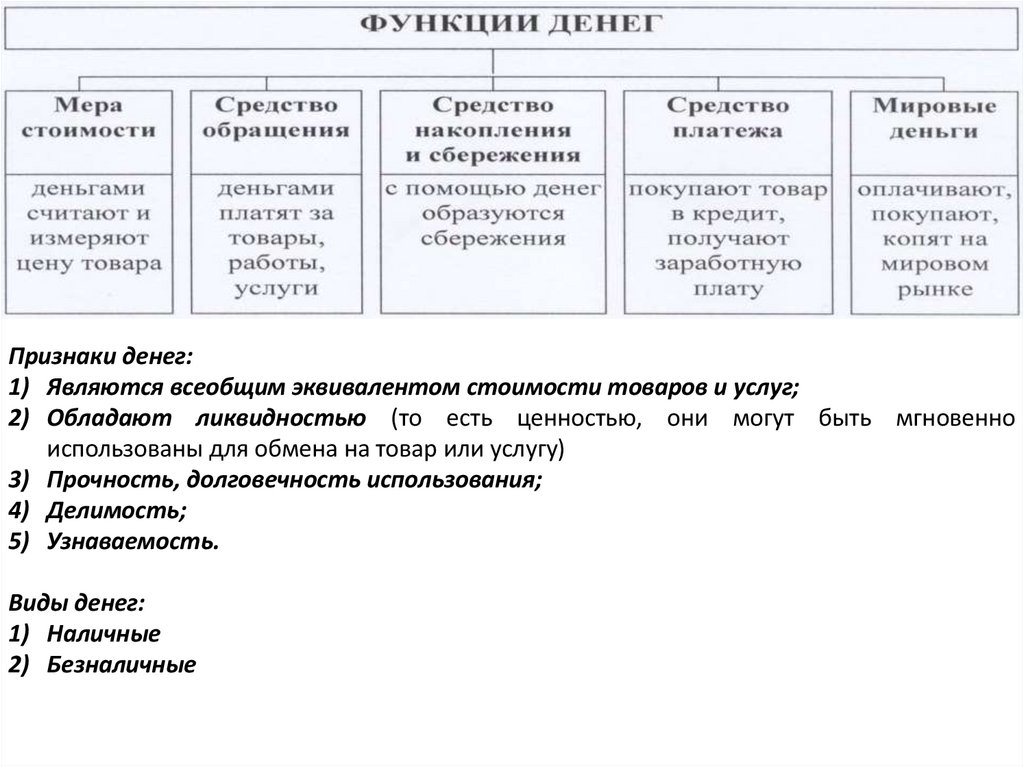 Признаки денег:1) Являются всеобщим эквивалентом стоимости товаров и услуг;