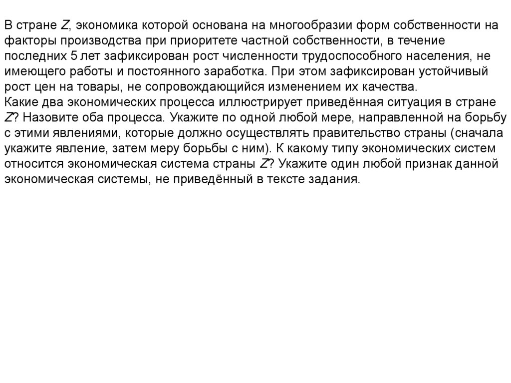 В стране Z, экономика которой основана на многообразии форм собственности нафакторы производства при приоритете частной собственности, в течение