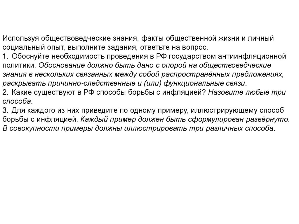 1. Обоснуйте необходимость проведения в РФ государством антиинфляционной