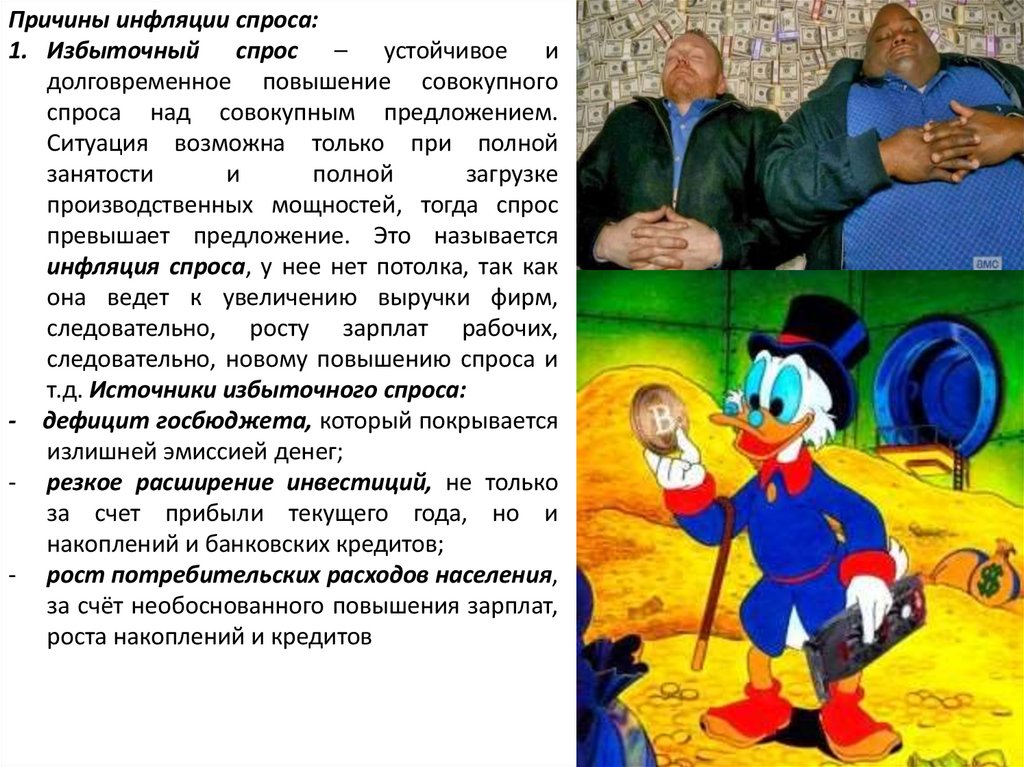 Причины инфляции спроса:1. Избыточный спрос – устойчивое и