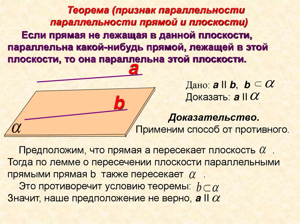 Теорема (признак параллельностипараллельности прямой и плоскости)