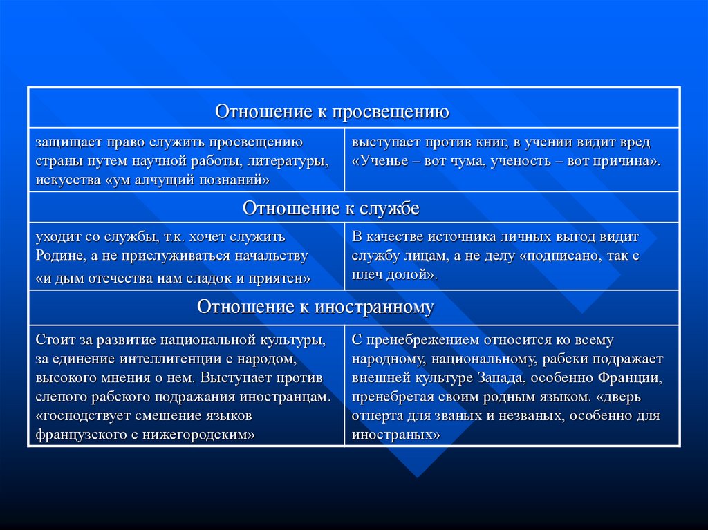 7. Взгляды Чацкого и Фамусова