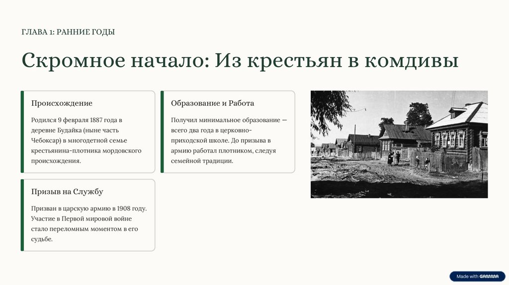 ГЛАВА 1: РАННИЕ ГОДЫСкромное начало: Из крестьян в комдивы