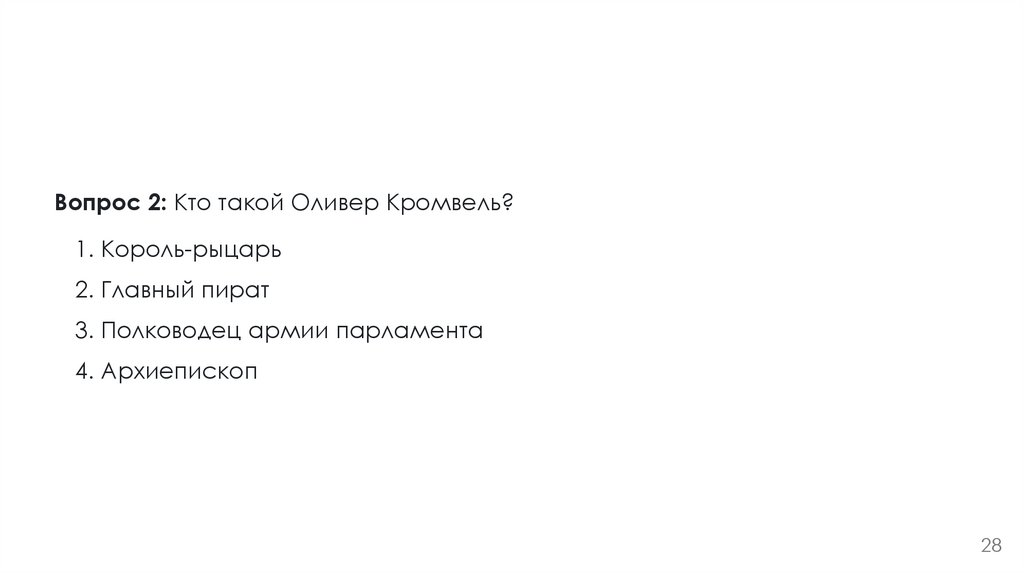 Вопрос 2: Кто такой Оливер Кромвель?1. Король-рыцарь