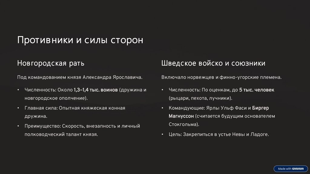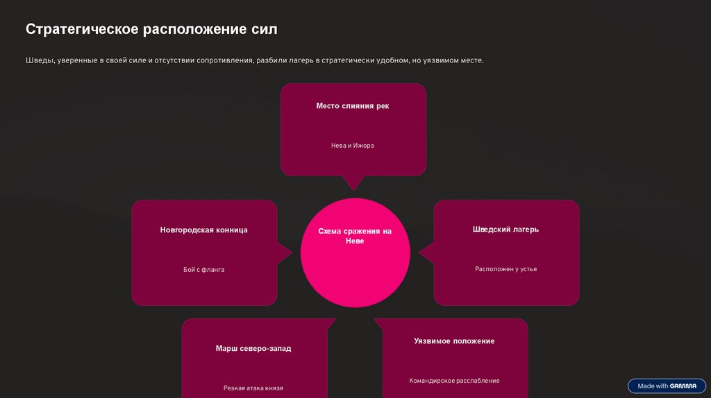 Стратегическое расположение силШведы, уверенные в своей силе и отсутствии сопротивления, разбили лагерь в стратегически удобном, но уязвимом месте.