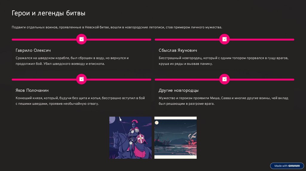 Герои и легенды битвыПодвиги отдельных воинов, проявленные в Невской битве, вошли в новгородские летописи, став примером личного мужества.