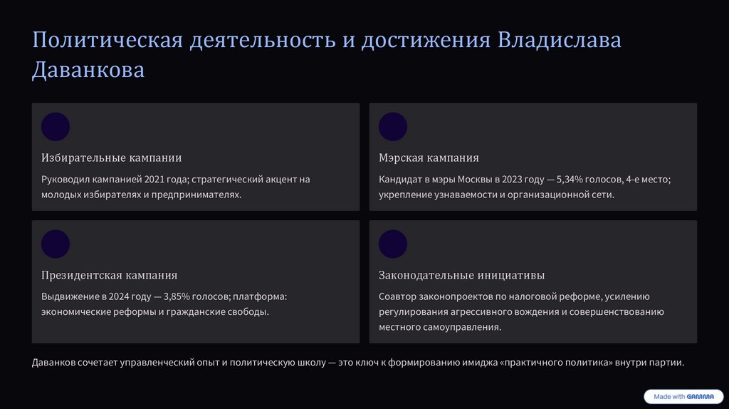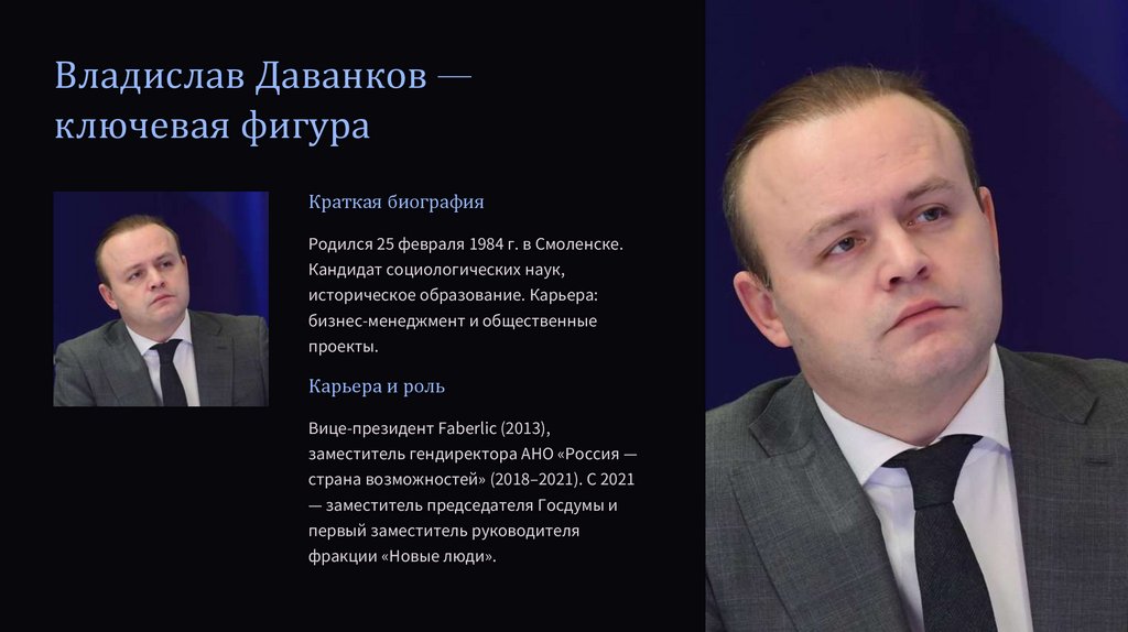 Даванков сочетает управленческий опыт и политическую школу — это ключ к формированию имиджа «практичного политика» внутри партии.