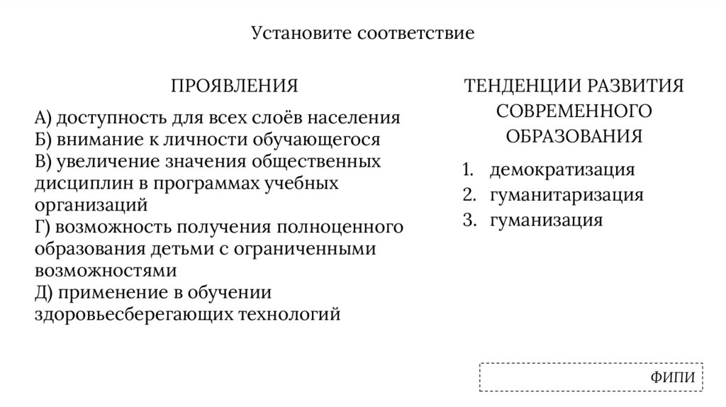 Установите соответствиеХАРАКТЕРИСТИКИ