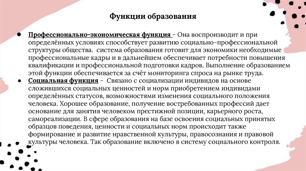 Функции образованияПрофессионально-экономическая функция - Она воспроизводит и при