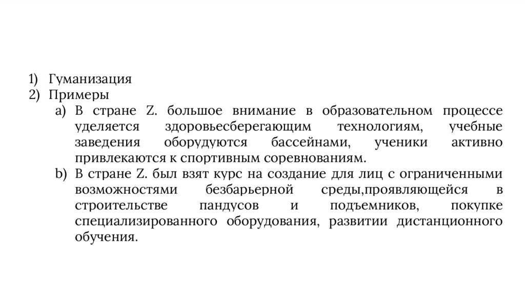 b) В стране Z. был взят курс на создание для лиц с ограниченными